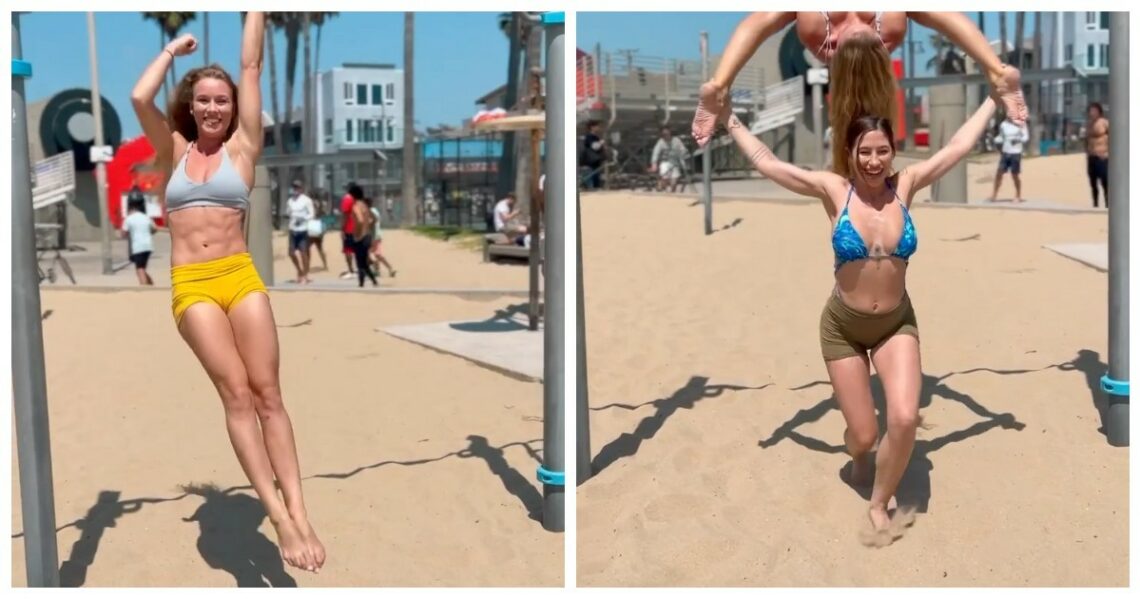 Автор: 06 ноября 2025 09:24 На видео девушки продемонстрировали настоящий мастер-класс силы и координации. Одна из них висела вверх ногами на турникете, выполняя шпагат, в то время как другая держалась руками за её ноги. Всё выглядело почти легко, но на деле требовало огромной силы, баланса и гибкости. Источник: Инстаграм (запрещён…
