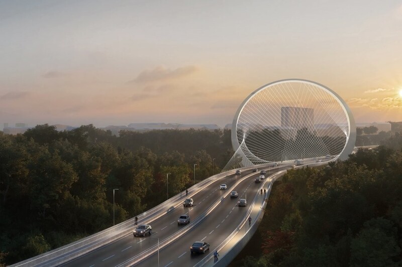 Ванты будут закреплены на пилоне кольцеобразной формы. Длина моста составит 390 метров с подходами, на нем организуют по две полосы движения в каждом направлении. Строительство должно завершиться до конца 2027 года.