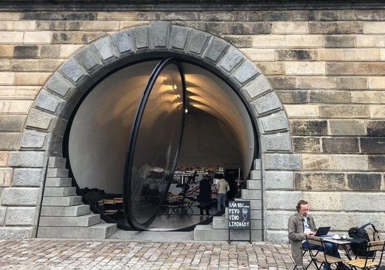 Элегантная и гигантская: дверь кофейни в Праге поражает размерами