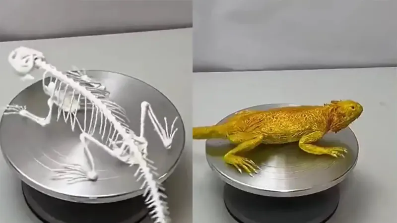 Автор этого ролика с энтузиазмом настоящего художника сотворил из сахарной мастики анатомически точную ящерицу. Он вылепил хрупкий скелет, тщательно соединяя крохотные косточки, затем слой за слоем добавил мышцы, органы и, наконец, покрыл свое творение тонкой чешуйчатой кожей. Результат — настолько правдоподобная ящерица, что кажется, будто она вот-вот дернется в сторону,…