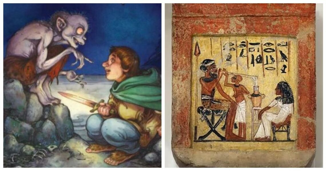 В оригинале «Хоббита» 1937 года Голлум был куда более учтивым созданием. Проиграв загадки, он смиренно указал Бильбо выход, даже после пропажи кольца. Поскольку его природа не была раскрыта, иллюстраторы давали волю фантазии, изображая кого угодно — от призрака до огромного монстра. Позже, работая над «Властелином Колец», Толкин осознал, что благородство…