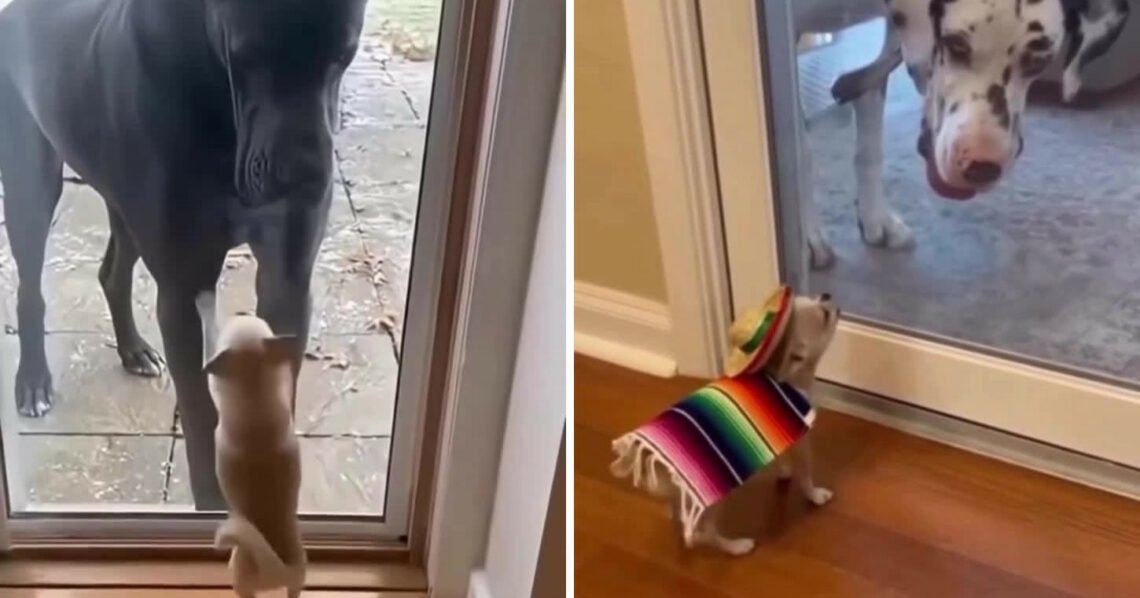 Автор: 06 ноября 2025 07:30 По словам хозяев, мелкие собакены отчаянно лают на огромных хвостатых, пока между ними стеклянная дверь. Однако стоит только открыть дверь, и смелость куда-то исчезает: одни пушистики замирают и теряют голос, а другие и вовсе притворяются мёртвыми. Источник: Ссылки по теме: