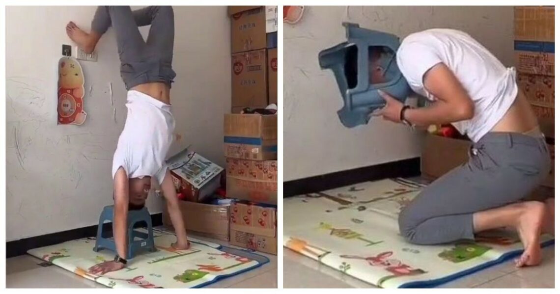 Автор: 03 декабря 2025 09:48 Парень решил попробовать стойку на голове, опираясь на пластмассовый стульчик. Конструкция не выдержала, и голова оказалась зажатой в стуле. Источник: Ссылки по теме: