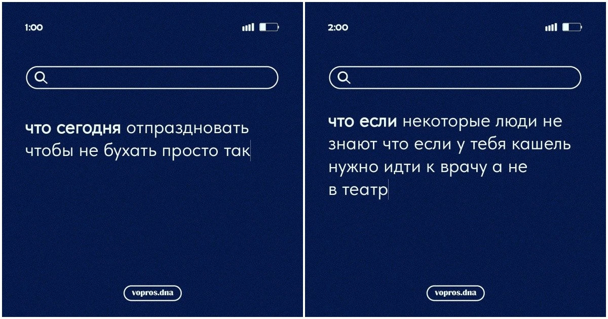 Авторы канала «Вопрос дня» публикуют шуточные варианты запросов в поисковиках, которые многие стеснялись спросить. Ну и что делать? Узнаем ли мы на них ответы? Большая часть вопросов — риторические, но вот задуматься всё равно заставляют, а к тому же понять, что в мире ещё полно таких же странных людей, которые…