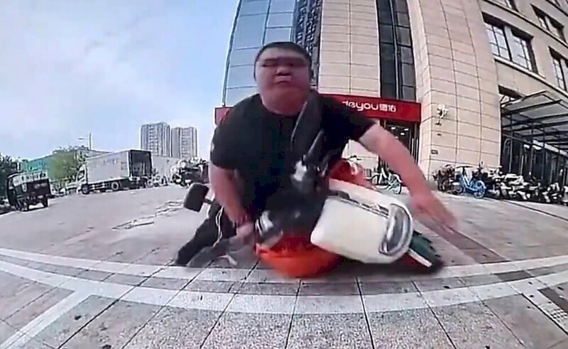 Пухлый скутерист эпично проверил легковушку на прочность