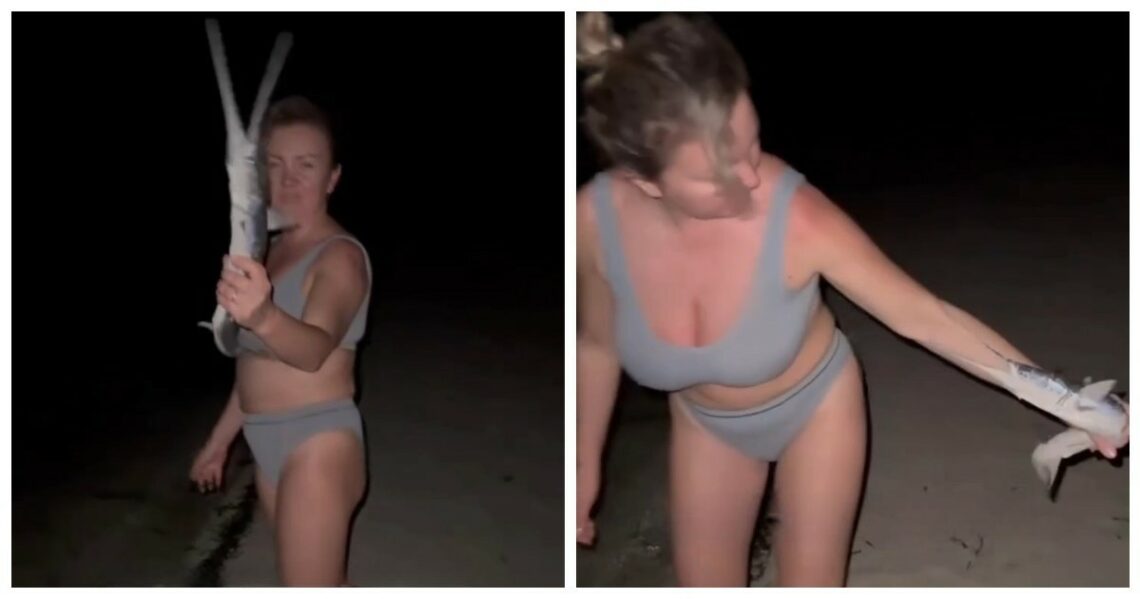 Неясно, кто именно напал — рыба-игла или сарган, — но туристка нисколько не расстроилась и даже обрадовалась: получились шикарные кадры для воспоминаний.