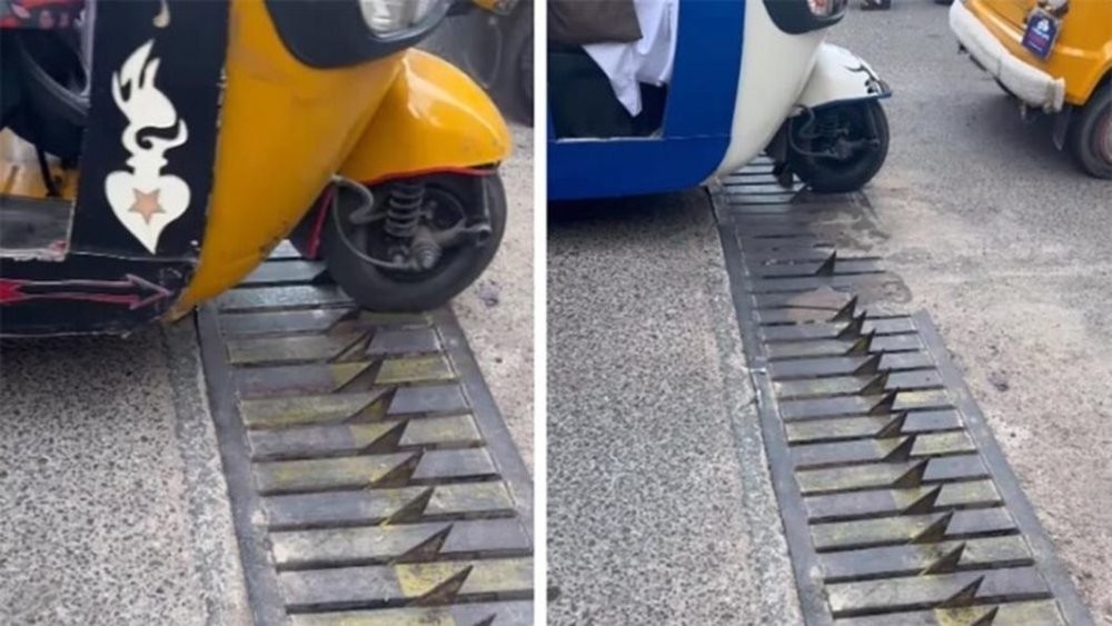 Автор: 08 ноября 2025 08:48 Местные жители рассказали, что инженеры для контроля движения разработали механизм с металлическими шипами, встроенными в дорожное покрытие. При проезде в правильном направлении шипы скрываются, а при встречном движении остаются острыми и способны пробить покрышки. Власти уверены, что такая мера быстро отучит нарушителей выезжать на встречную…