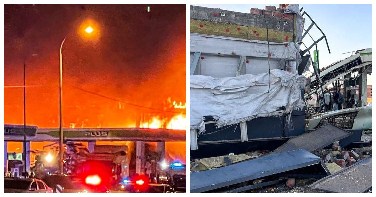 По официальным данным. пострадавших нет. Однако некоторые Telegram-каналы сообщают, что травмы получили четыре человека, включая мать с ребёнком, в которых попал баллон, отброшенный взрывной волной. Также сообщается, что автомобиль сбил девушку, которая в панике перебегала дорогу. На месте ЧП продолжают работать оперативные службы. Причины пожара пока неизвестны. Однако отмечается, что…