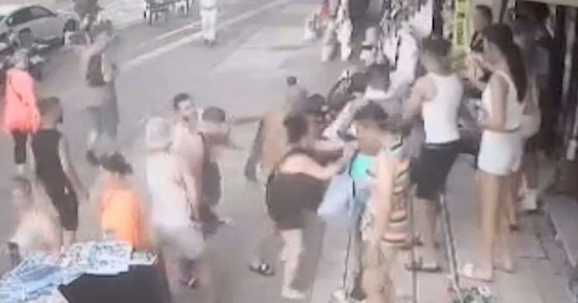 Другие торговцы пытаются вмешаться, но их появление лишь разжигает конфликт. Постепенно драка набирает обороты, вовлекая всё больше участников. В ход идут палки и другие подручные средства. Камень летит в владельца магазина, а тот пытается отбиться от нападающих зонтиками. Участники драки, не замечая машин, перемещаются на дорогу.