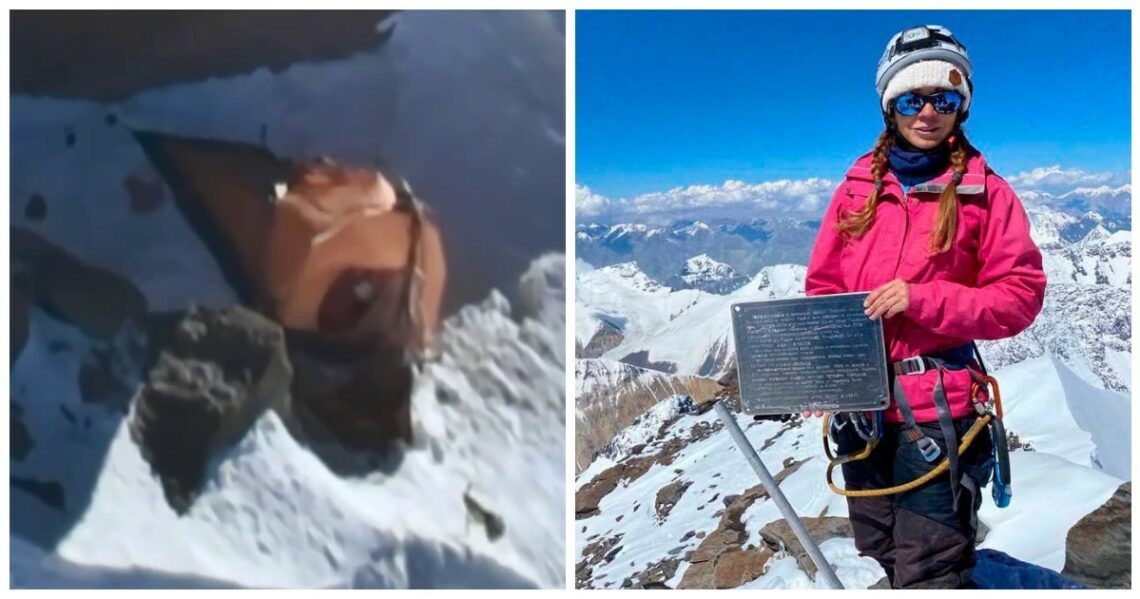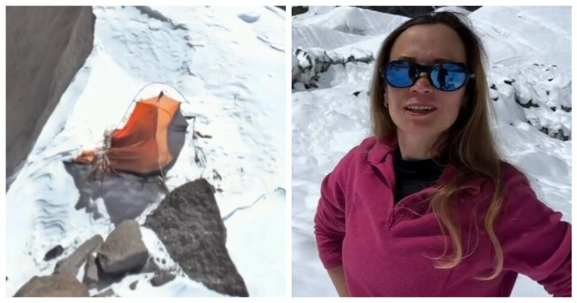 Дрон заснял очередное видео с палаткой застрявшей на пике Победы альпинистки
