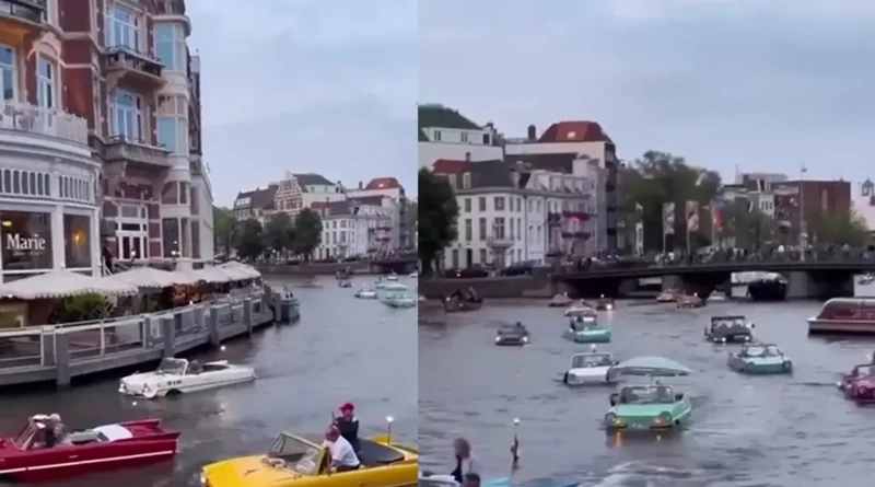 Парад винтажных машин-амфибий в Амстердаме