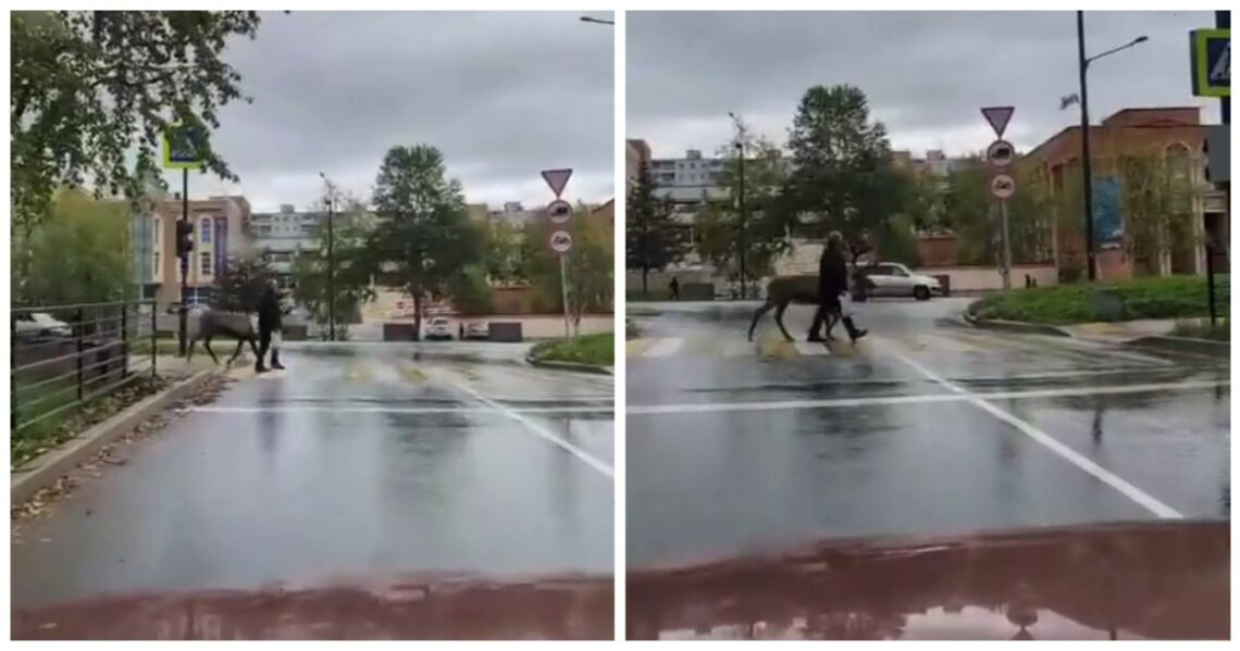 Олень переходит дорогу в Амурской области
