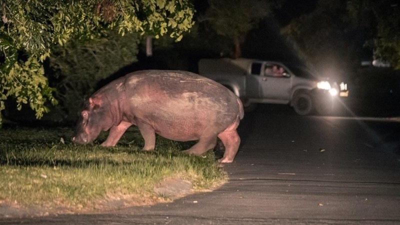 Пробка по-африкански: два бегемота вышли на дорогу и остановили весь город