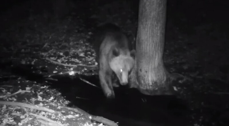 На размещенных кадрах видно, как хищник ночью, заметив воду, сначала неспешно сел в нее, а затем уложил голову и прикрыл глаза. При этом видно, что медведь тяжело дышал, запыхавшись после прогулки. По данным источника, накануне в этой же луже отдыхали медведица с медвежонком. «Медведи кайфуют в лужах, чтобы избавиться от…