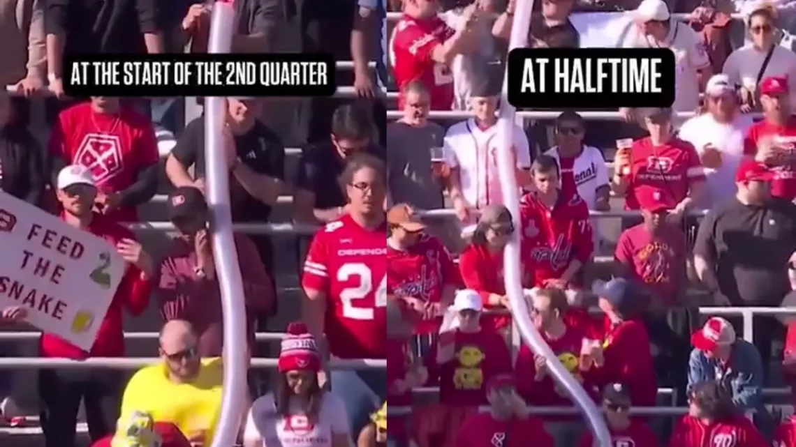 Болельщики на трибуне соорудили огромную змейку из пустых стаканов
