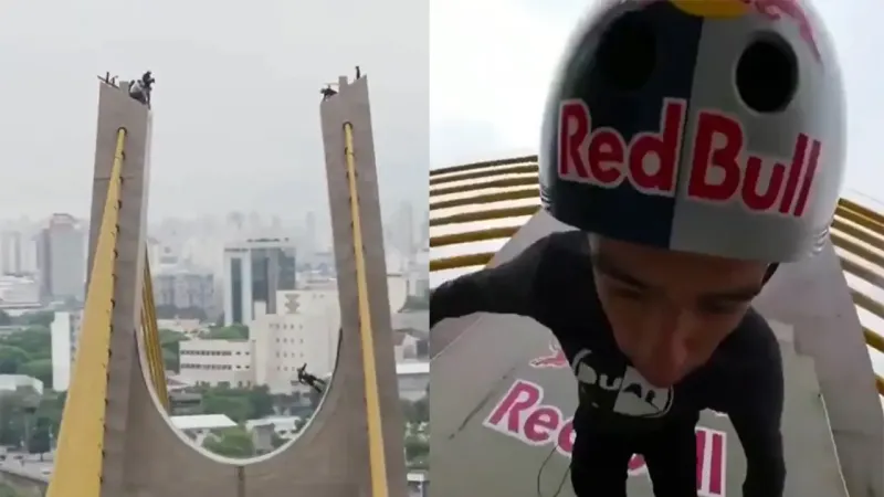 Скейтер использовал высокий мост в Бразилии в качестве рампы