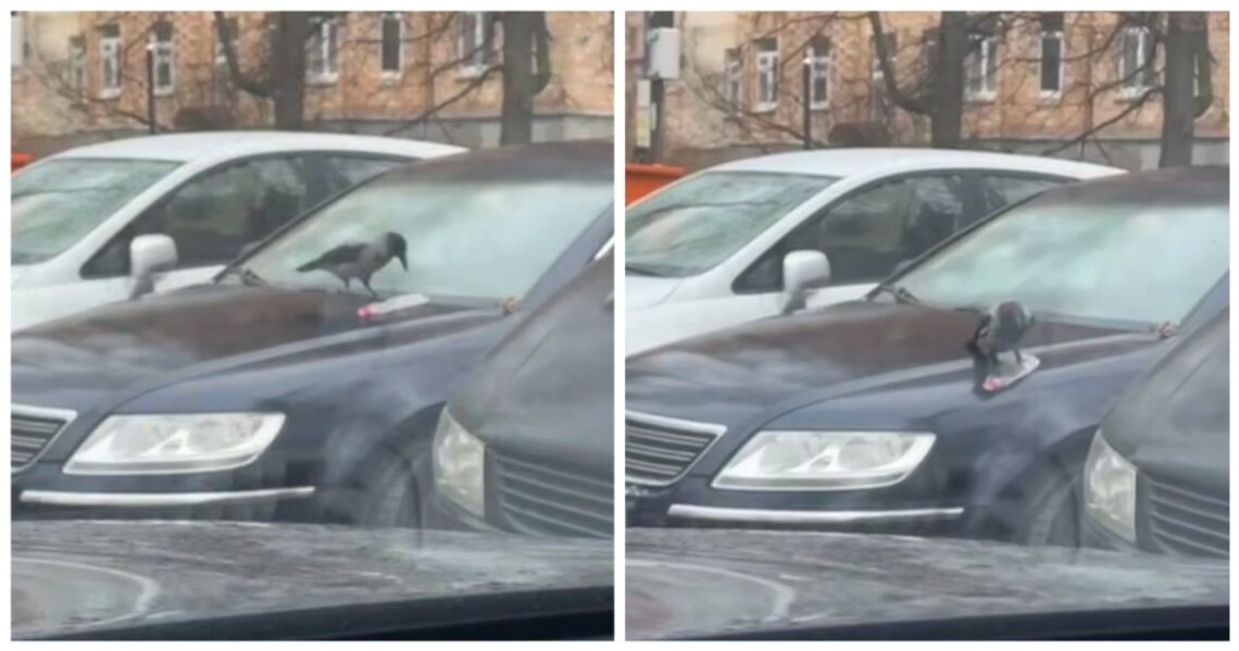На одной из московских улиц ворона решила покататься с машины на импровизированном скейтборде. На кадрах ворона стоит на смятой пластиковой бутылке и подталкивает ее клювом, чтобы съехать с капота автомобиля. По словам очевидцев, после ворона снова забралась повыше, чтобы съехать с покатой части автомобиля. Скоро на сноуборд пересядет.
