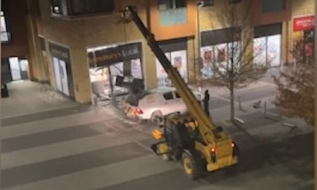 В Великобритании банда грабителей вырвала банкомат из магазина с помощью строительного погрузчика
