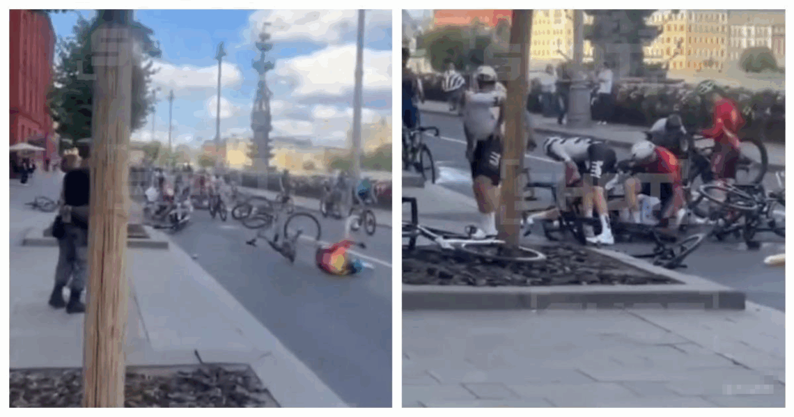 Массовый завал велосипедистов в Москве попал на видео