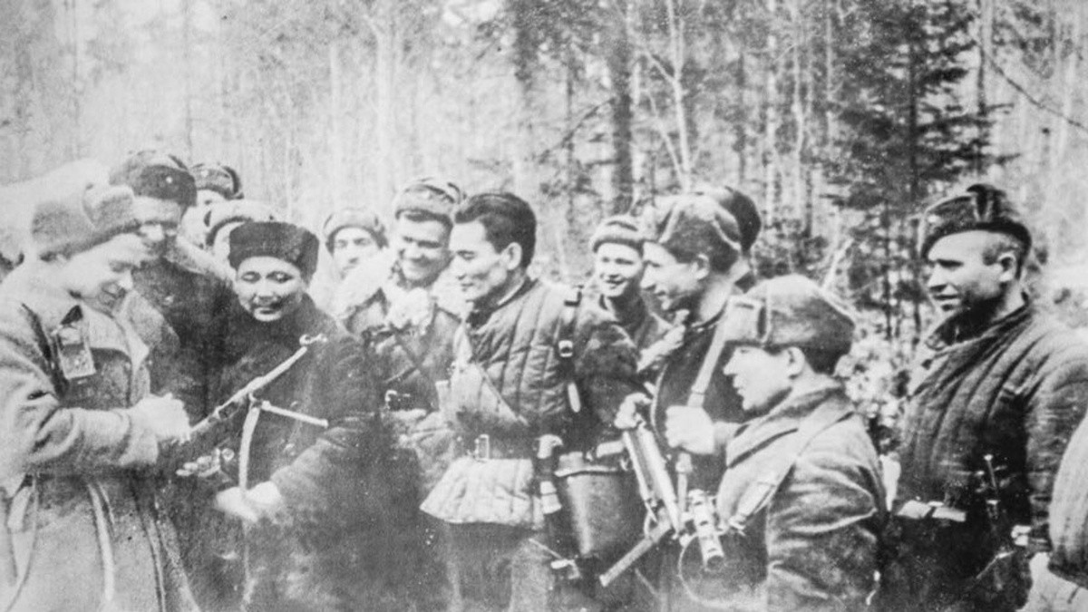Это случилось в 1941-м году во время битвы за город Волоколамск. Немцы тогда 23-го октября очень сильно нажали на левый фланг 316-й Панфиловской дивизии, к вечеру прорвали фронт и вышли к штабу 1075-го стрелкового полка. Старший лейтенант Бауыржан Момышулы тогда командовал батальоном, и держал со своими бойцами оборону возле деревни…