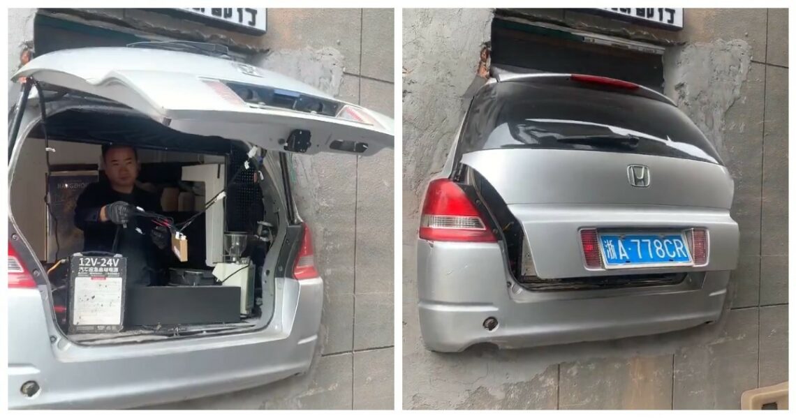 Автор: 31 октября 2025 08:16 Небольшое кафе с большой идеей: в его дизайне использован настоящий автомобиль — багажник превращён в дверь, которая открывается как в машине. Источник: Ссылки по теме: