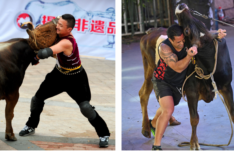 Китайская борьба с быком голыми руками