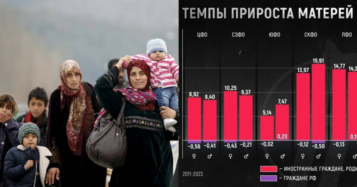 При этом доля детей, рождённых гражданами РФ, в общем по стране ежегодно снижалась на 3,1% в год. За 7 лет темпы прироста матерей и отцов среди граждан РФ снизились на 0,56% и 0,41% соответственно. Такая ситуация характерна практически для всх округов. Интересно, что в Сибири параллельно со снижением доли русских…
