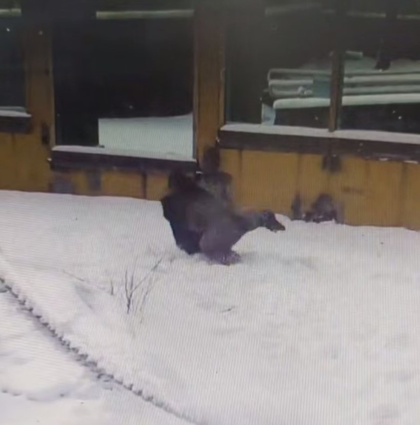 Горилла из Московского зоопарка радуется апрельскому снегу