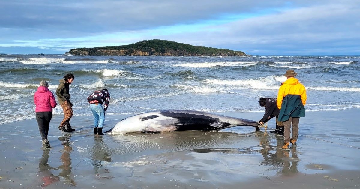 Редчайшего кита выбросило на пляж Новой Зеландии