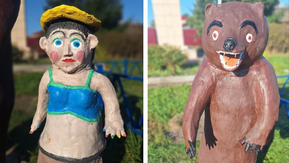Скульптура Маши и Медведя в селе в Ульяновской области