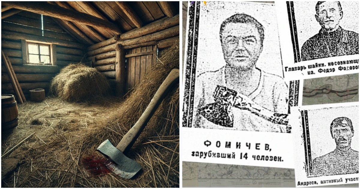 Следователи бродили по кордону в поисках улик, когда зашли на конюшню и там нашли ещё шестнадцать трупов, закиданных сеном. Три женщины, семеро мужчин и шестеро детей. Рядом, как издёвка, лежал недавно зарезанный телёнок. Тут же лежал колун, топорище, всё в крови и топор, с прилипшими на лезвие окровавленными женскими волосами.…