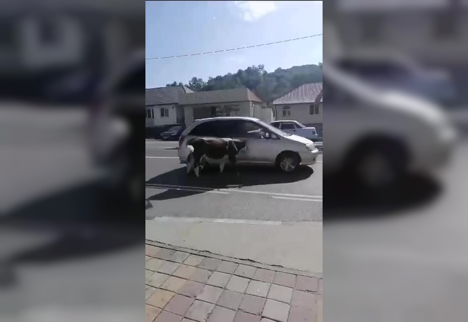 Животное несколько раз ударило сочинку рогами так, что та осталась лежать на асфальте. Скорую потерпевшей вызвал прохожий. Полиция уже ищет хозяев коров, которые находились на самовыгуле и не были чипированы.