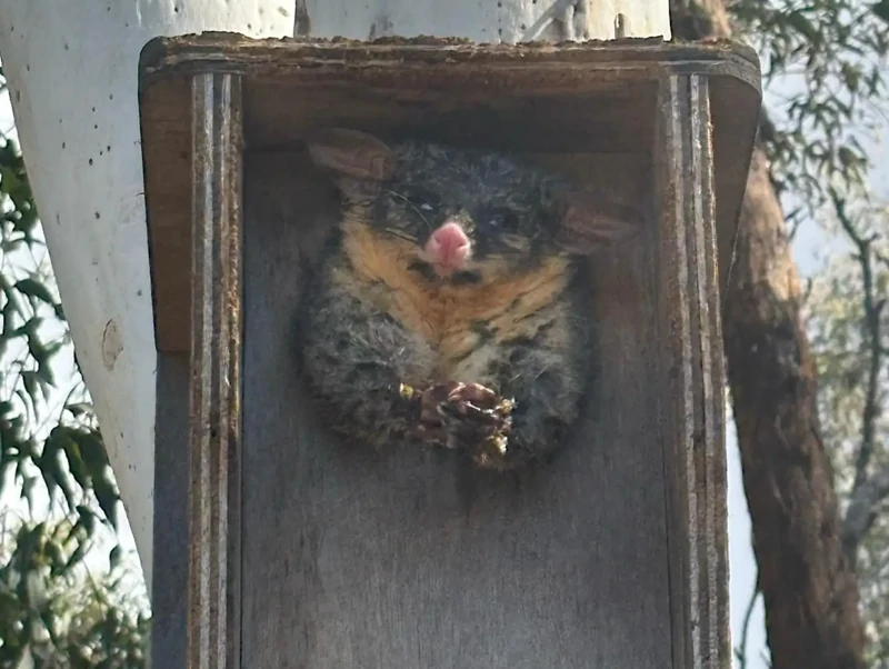 Поссум решил поселиться в птичьем скворечнике и застрял там