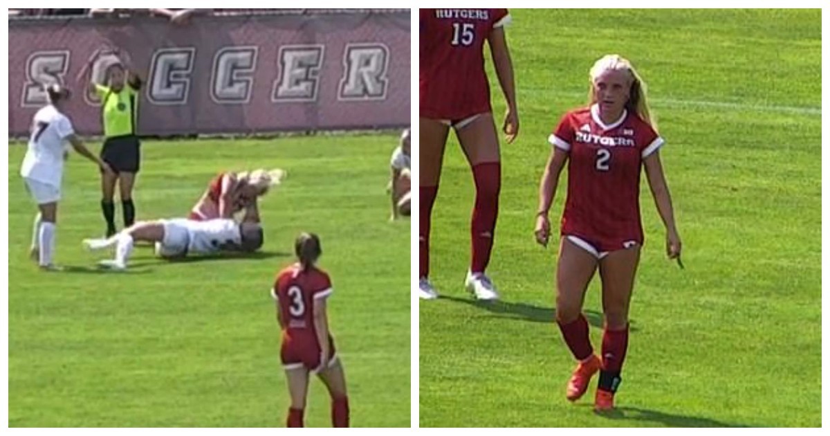 На 55-й минуте игры старший игрок Rutgers Джиа Гирман совершила грубый фол против соперника. UMass, видимо, хотел быстро реализовать штрафной удар, чтобы застать Rutgers врасплох, и игрок Эшли Ламонд подошла к мячу, который все еще находился у ног Гирман.