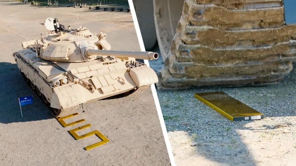 Аккумулятор электромобиля Geely E5 попытались раздавить танком