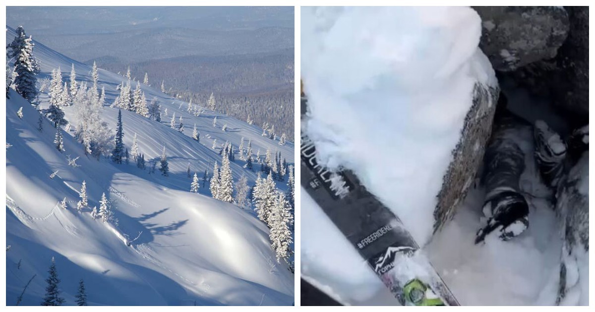 В Кемеровской области фрирайдер спас лыжника, провалившегося в каменную яму